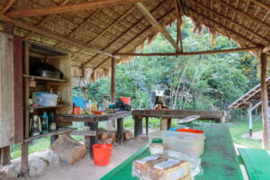 hangmat en hoe het geregeld is met de sanitaire voorzieningen in de jungle. In de late namiddag, als de kok